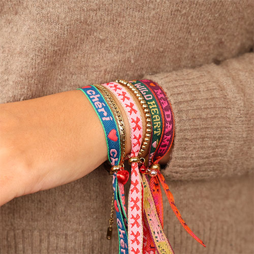 BY31® Lint met tekst "Chéri" Dark blue-light pink-red-green