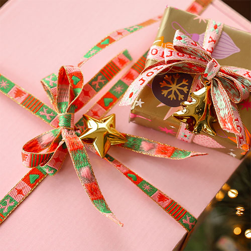 BY31® Lint met tekst kerst Light pink-red-green-gold