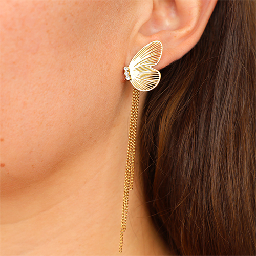 Roestvrij stalen (RVS) Stainless steel oorbellen / oorstekers vlinder Gold