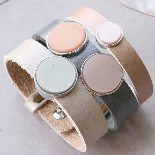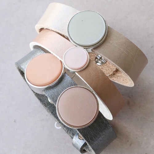 Ben jij al klaar voor de feestdagen? Met deze armbanden ben je dat zeker wel! Wij zijn helemaal weg van metallic leer en krijgen er geen genoeg van. De armbanden zijn supermooi om zo te dragen maar zijn ook heel gaaf te combineren met onze cabochons. Neem bijvoorbeeld onze houten cabochons met speciale coating. De houten cabochons zijn subtiel en de unieke prints zijn echt te gek voor de feestdagen. Ook onze cabochons van Polaris Elements lenen zich perfect voor het maken van een prachtige Cuoio armband. Het leukste van de Cuoio armbanden in combinatie met setting sliders en cabochons is dat je er elke keer andere cabochons op kunt plaatsen. Zo kun je de armband aan met al je verschillende feestoutfits.
