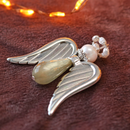Geluksengeltjes maken met sieraadonderdelen ziet er misschien moeilijk uit, maar dat is het zeker niet! Wij helpen je graag op weg en laten je zien wat je nodig hebt en welke engeltjes je kunt maken. De benodigdheden voor het maken van de engeltjes zijn: nietstiften, Polaris Elements of top facet druppel kralen, DQ metalen engelen vleugel kralen, zoetwaterparels of top facet kralen, strass rondellen of DQ metalen spacer kralen, een kniptang en een rondbek tang. Je rijgt om te beginnen een druppel kraal over de nietstift en vanaf dan rijg je de eerdere genoemde items in de volgorde naar wens verder over de nietstift. Voor het hoofdje kun je natuurlijk ook andere kralen gebruiken dan zoetwaterparels en top facet kralen. Als je klaar bent met rijgen knip je de nietstift ca. 1cm boven de laatste kraal af. Van dit deel buig je tot slot met behulp van de rondbektang een oogje. Zo simpel is het, succes!