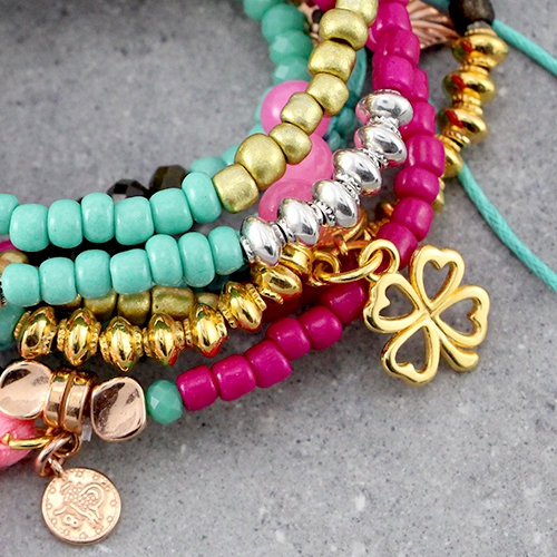 Dit kleurrijke setje is gemaakt met ons mooie DQ metaal. Gebruik de mooie nieuwe bedels en de tussenstukken in combinatie met kleurrijke kralen voor een opvallend setje sieraden! Deze leuke en trendy ontwerpen kunt u zelf aanpassen naar uw eigen smaak. DQ metalen kralen en bedels zijn lekker veelzijdig. De kleine kraaltjes van DQ metaal hebben mooie details die een fijn contrast opleveren met de leuke kralen uit ons assortiment.. DQ metaal is geschikt om van elk idee een top fashion item te maken! DQ metalen onderdelen, kralen en bedels kunnen dus zeker niet ontbreken in een geslaagde collectie. Combineer paarse, gouden, roze, bruine, grijze en turquoise kralen met gouden kralen en bedels van DQ metaal met wat leuke kwastjes voor een knallend effect! Gebruik ook onze zilveren, rosé gouden en antiek brons kralen, tussenstukken en bedels van DQ metaal voor elke stijl!