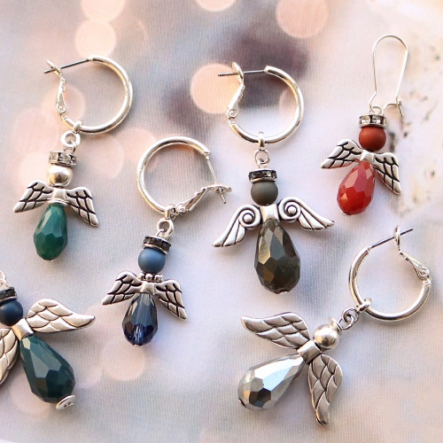 Ontwerp nu ook zelf deze super schattige engeltjes van top facet kralen druppels. Combineer deze druppels met metalen vleugels, ronde kralen van facet en strass rondellen. Rijg al deze onderdelen aan een nietstift en hang het aan een onderdeel naar keuze. Zo kan je er bijvoorbeeld bijzondere oorbellen van maken, maar deze engeltjes staan ook erg leuk aan een sleutelhanger of ketting.