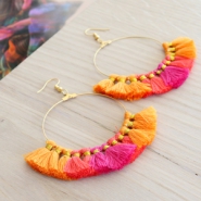 Deze leuke oorbellen zijn helemaal Ibiza! Wil jij ze ook maken? Gebruik dan onze creolen van DQ metaal als basis. Schuif de kwastjes om het draad van de creolen nadat je eerst de buigringen van de kwastjes hebt verwijderd. Je kunt kiezen uit diverse oorbellen en kwastjes zo kun je zelf het gewenste effect creëren. Werk met opvallende kleurencombinaties en mooie contrasten. Als je met XXL kwastjes gaat werken kun je de kwastjes in een mooie ronde vorm knippen. Bekijk ook de DIY video voor een meer gedetailleerde uitleg van hoe je deze oorbellen kunt maken. Maak jij deze fringe oorbellen van creolen en kwastjes groot en opvallend of maak jij ze klein maar fijn?