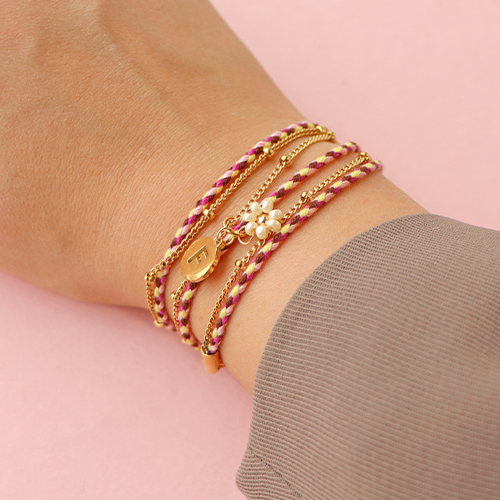 Trendy koord gevlochten 2mm Neon yellow-pink