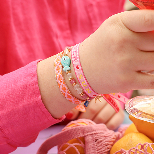 Sieraden kaartjes "let's shellabrate" Orange-pink
