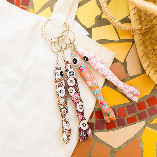 Versier je accessoires met onze bloemige sleutelhangers in visvorm