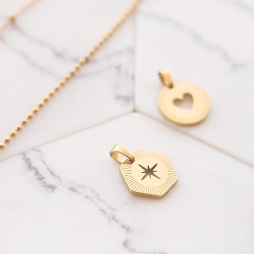Roestvrij stalen (RVS) Stainless steel bedels hexagon heart Mix & Match Zilver