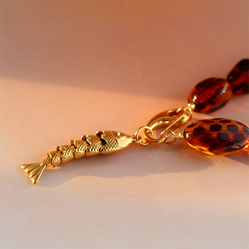 Roestvrij stalen (RVS) Stainless steel bedels vis Gold