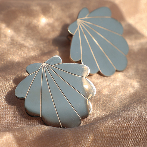 Roestvrij stalen (RVS) Stainless steel oorbellen / oorstekers schelp Silver