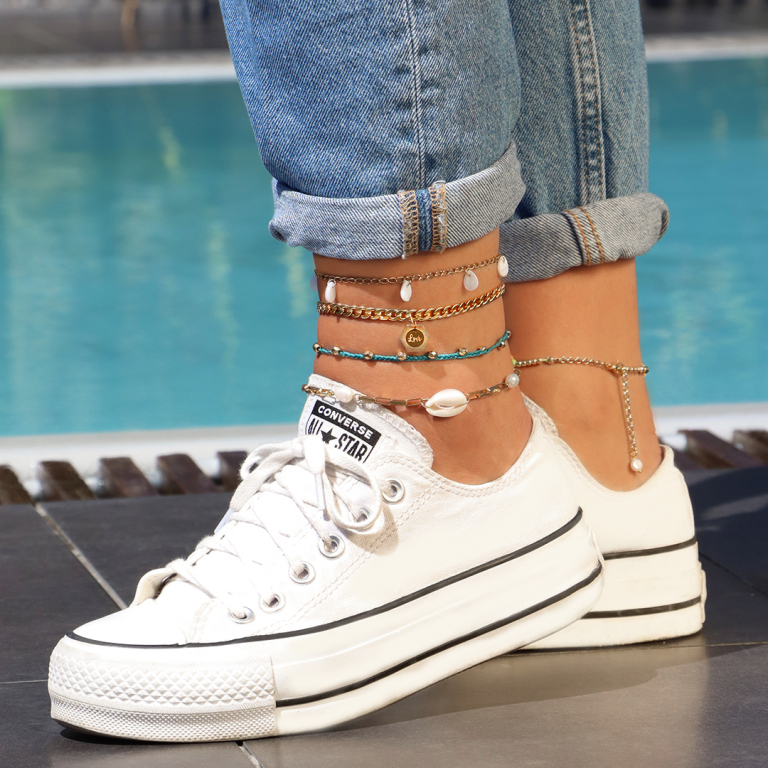 Enkelbandjes zijn een must voor iedere zomerse outfit! Deze trendy items kan je daarom niet missen in jouw zomer collectie. Laat je inspireren en maak de leukste ontwerpen. Ga bijvoorbeeld aan de slag met diverse kralen, trendy bedels en schelp items! Of wat dacht je van een enkelbandje met grove jasseron schakels? Draag het populaire jasseron enkelbandje, samen met jouw ontwerp en kant-en-klare items voor een musthave look.