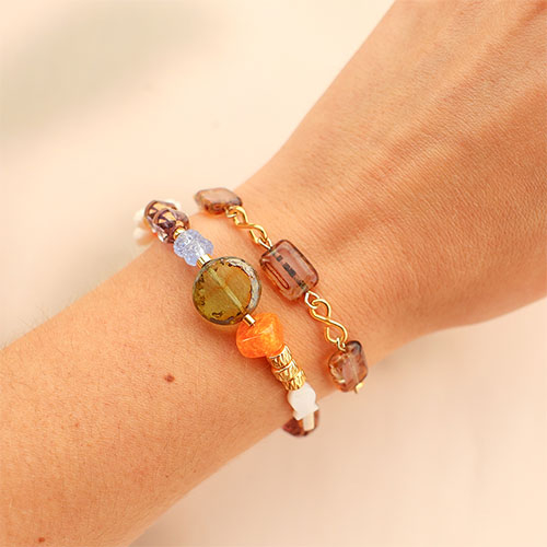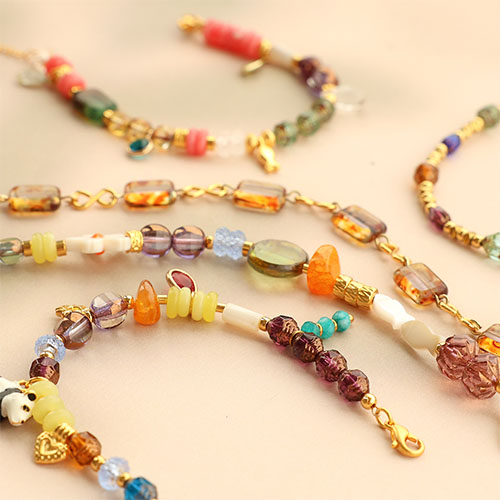 Een sprankelende collectie in diverse vormen, maten en kleuren. Perfect om kleurrijke armbanden mee te maken die nét dat beetje extra luxe uitstralen. Deze kralen worden gemaakt door vloeibaar glas in een metalen mal te persen, waarna ze zorgvuldig worden gepolijst. Zo ontstaan gladde kralen met karakter, van strak en simpel tot verfijnd en gedetailleerd.