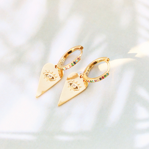 Zirkonia rainbow creolen met oogje Gold