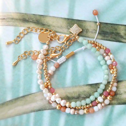 Natuursteen kralen geven een sieraad al snel een luxe en unieke uitstraling. Met de nieuwe collectie Jade kralen kun je daarom trendy armbanden maken met een chique look. Begin met het selecteren van welke kleur en maat Jade kralen je graag wilt gebruiken. Kies vervolgens items die mooi bij de Jade natuursteen kralen passen. Wat dacht je van goudkleurige DQ metalen kralen, zoetwaterparels en top facet kralen? Door een mooie combinatie te rijgen op macramé draad of metaaldraad creëer je een prachtige armband. Maak het sieraad compleet met een karabijnslot of gebruik de macramé square knot techniek. Plaats nog een paar kraaltjes aan het uiteinde van de armband en je sieraad is helemaal klaar. Met welke Jade kralen ga jij de mooiste combinaties ontwerpen?