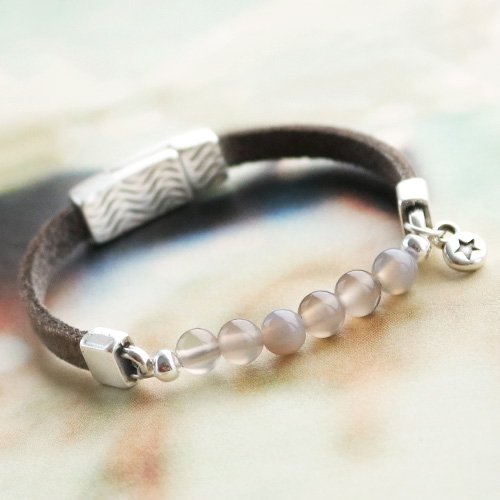 Ben jij op zoek naar inspiratie om wat moois te maken met onze nieuwe collectie natuursteen kralen? Lees dan vooral verder! Wij hebben gekozen om armbandjes te maken met de natuursteen kralen. We hebben de kralen gecombineerd met DQ leer door middel van eindkappen waartussen de natuursteen kralen zijn geregen. Dit geeft de natuurlijke look een stoere ondertoon. Gebruik vooral ook subtiele DQ metalen bedels om het geheel wat speelser te maken. Tot slot hebben we nog houten kralen gebruikt voor het contrast met de glanzende natuursteen kralen. Sluit je creatie af met een magnetisch slot en gebruik voor de kralenarmbandjes elastisch rijgdraad voor het gemak. Succes!