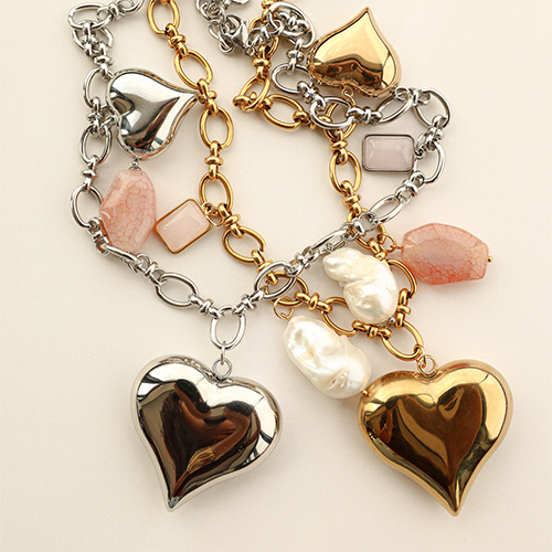 Roestvrij stalen (RVS) Stainless steel bedels schelp hart Gold-white