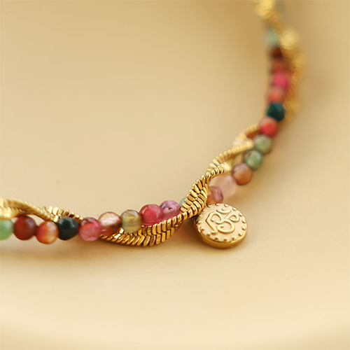 Roestvrij stalen (RVS) Stainless steel bedels rond met indisch teken Gold