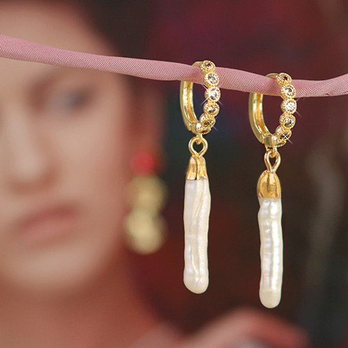 BQ Zoetwaterparels bedel tooth Gold-Natural white