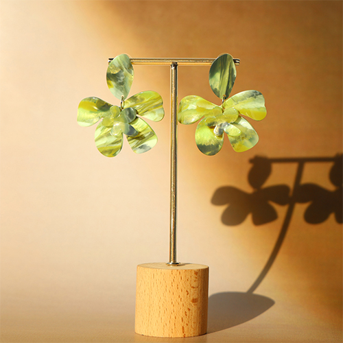 Trendy resin oorbellen / oorstekers bloem Multicolour green