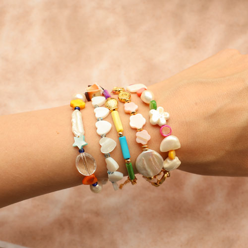 Ontdek onze nieuwe collectie schelp kralen, verkrijgbaar in vrolijke en rustige kleuren. Deze prachtige kralen brengen kleur en vreugde in jouw sieradencollectie. Combineer de kralen met schelp chips, strass bedels en keramiek kralen voor mooie armbanden of combineer met dq sleutelhangers, macramedraad voor een trendy telefoonkoord.