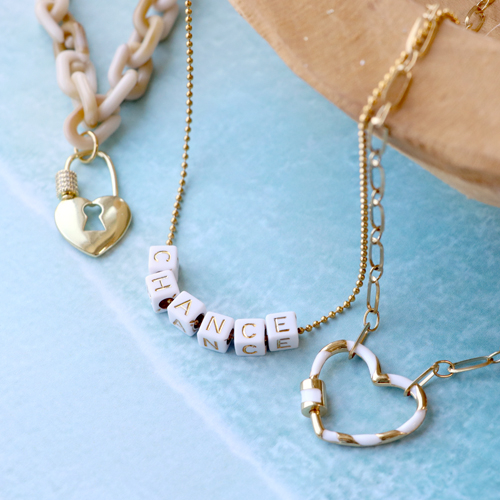 Voor een elegante look combineer je de sloten samen met zoetwater parels. Je kunt er zelfs voor kiezen om de parels te personaliseren met zirconia brass elements. Hierdoor laat je de prachtige zirkonia stenen vaker terugkomen in het sieraad. Wil je graag een sieraden set ontwerpen? Denk er dan bijvoorbeeld ook aan om een jasseron kettingen te maken met cube letterkralen. Ga aan de slag en creëer prachtige statement sieraden!