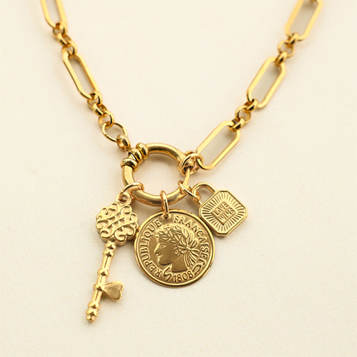 • Roestvrij stalen (RVS) Stainless steel onderdelen verlengketting coin 6mm Goud