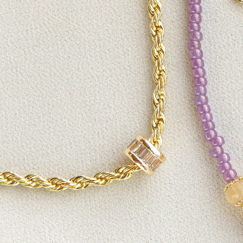 Deze kleine zirkonia bedels staan prachtig aan een mooie jasseron ketting die je als ketting of als body chain kunt verwerken. Maak diverse kettingen die je samen kunt dragen, want layering is nog altijd de trend! Ontwerp bijvoorbeeld een ketting met natuursteen facet kralen en in het midden een zirkonia kraal. Om deze kraal netjes op zijn plek te houden en het rijggat te verbergen kun je bijvoorbeeld een C.U.S® sieraden message beads eindkap gebruiken.
