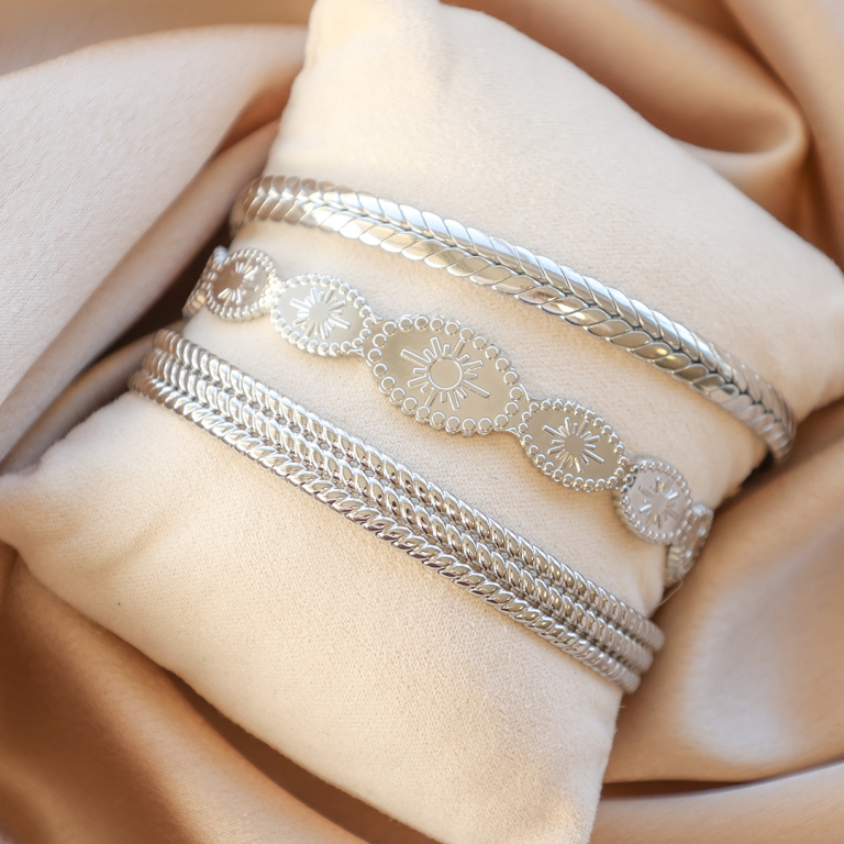 Roestvrij stalen (RVS) Stainless steel armbanden bangle sun Silver