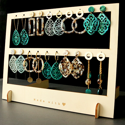 Sieraad display Bamboe voor oorbellen 2 rijen "made with ♥" Natural (natuurlijke kleur van het Bamboe)