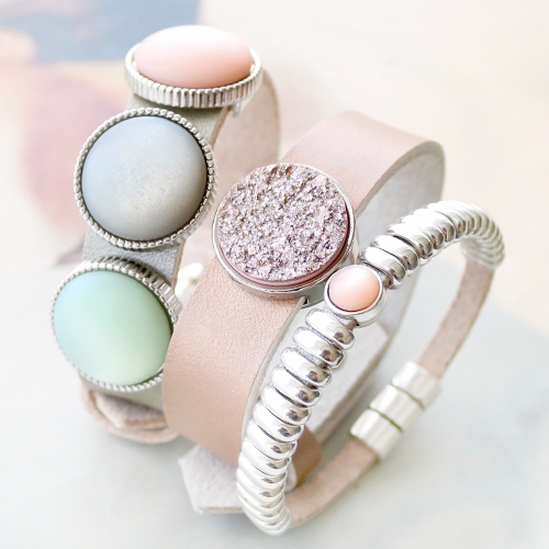Deze stijlvolle sieraden zijn een echte aanwinst voor je voorjaarscollectie! De nieuwe cabochons van Polaris Elements hebben een luxe uitstraling. In combinatie met DQ metaal en Designer Quality leer of een Polaris Cuoio armband is dit super chique. Gebruik pasteltinten cabochons in combinatie met Cuoio armbanden of DQ leer in metalic kleuren. Dit past supergoed bij elkaar, bij het DQ metaal en het levert een prachtig contrast op.
