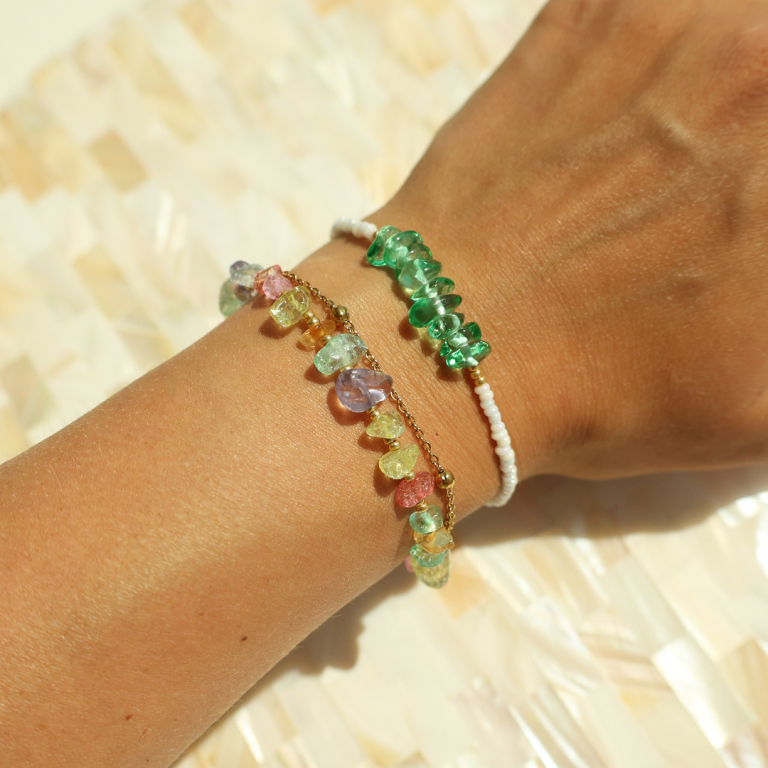 Laat je verleiden door deze nieuwe collectie glaskralen chipstone! De prachtige glaskralen hebben allemaal een verschillende vorm, waardoor je sieraden een speels uiterlijk krijgen. Perfect voor opvallende oorbellen, armbanden en kettingen.