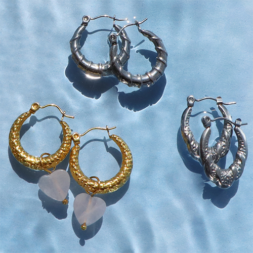 Ontdek nu de verschillende designs van deze nieuwe serie rvs oorbellen! Alle varianten zijn verkrijgbaar in goud- en zilverkleur. Je kunt de oorbellen zo dragen, of ze personaliseren door er een kant-en-klare bedel of een zelfgemaakte bedel aan te hangen.