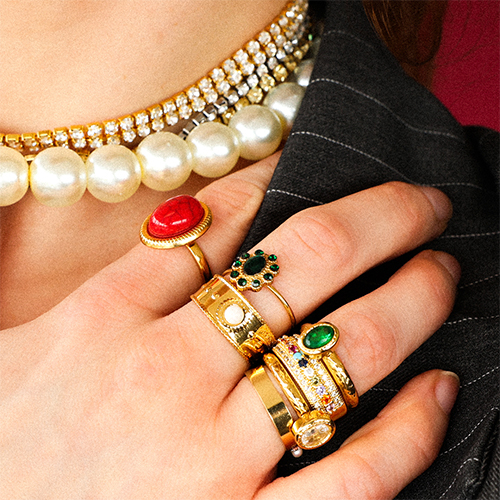 Roestvrij stalen (RVS) Stainless steel ringen parels Gold