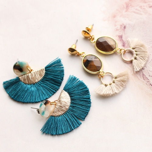 Wil je ook zelf trendy oorbellen ontwerpen? Neem dan zeker even de tijd om deze inspiratie te bekijken. Met deze nieuwe kwastjes hebben we oorbellen ontworpen, gecombineerd met DQ metaal en tussenstukken van halfedelsteen. Met deze sieraadonderdelen creëerden we de allerleukste fringe oorbellen met de trendkleuren van dit seizoen. Vind jij ze ook prachtig?