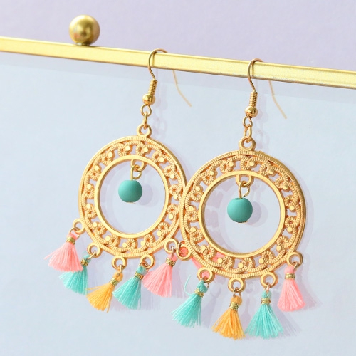 Trendy oorbellen en armbandjes met mini kwastjes, DQ metalen bedels en karabijn sloten