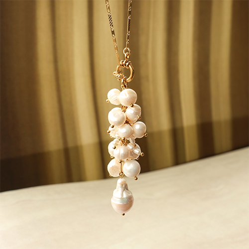 • BQ Zoetwaterparels bedel asymmetric Gold-Natural white