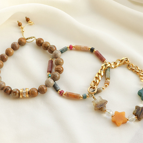 Deze serie natuursteen kralen kun je prachtig gebruiken voor het ontwerpen van diverse armbanden. Kies verschillende rijgmaterialen zoals macramé draad, elastiek rijgdraad of jasseron ketting. Combineer de natuursteen kralen met facet geslepen natuursteen kralen, natuursteen kralen tubes en DQ metalen kralen. Je kunt de armbanden samen dragen met een kant-en-klare armband zoals een Polaris Steel bangle armband met cabochon.