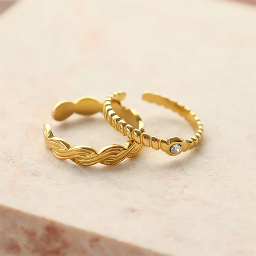 • Roestvrij stalen (RVS) Stainless steel ringen wave Goud