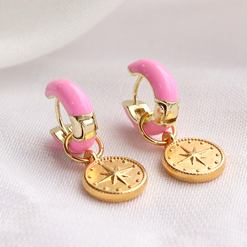 • Trendy oorbellen creolen enamel 15mm Pink-gold