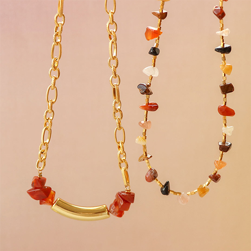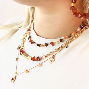 De chips stone kralen zijn perfect voor een sieraden set voor je najaarscollectie. Rijg een eenvoudige ketting waarbij je de chips stone kralen afwisselt met Miyuki rocailles. Of gebruik diverse soorten jasseron ketting waar je kettingen mee maakt. Ontwerp een mooie dubbele armband die voor de helft bestaat uit jasseron en voor de andere helft uit chips stone kralen. Een bijpassende ring van Artistic Wire mag natuurlijk niet ontbreken in deze set!