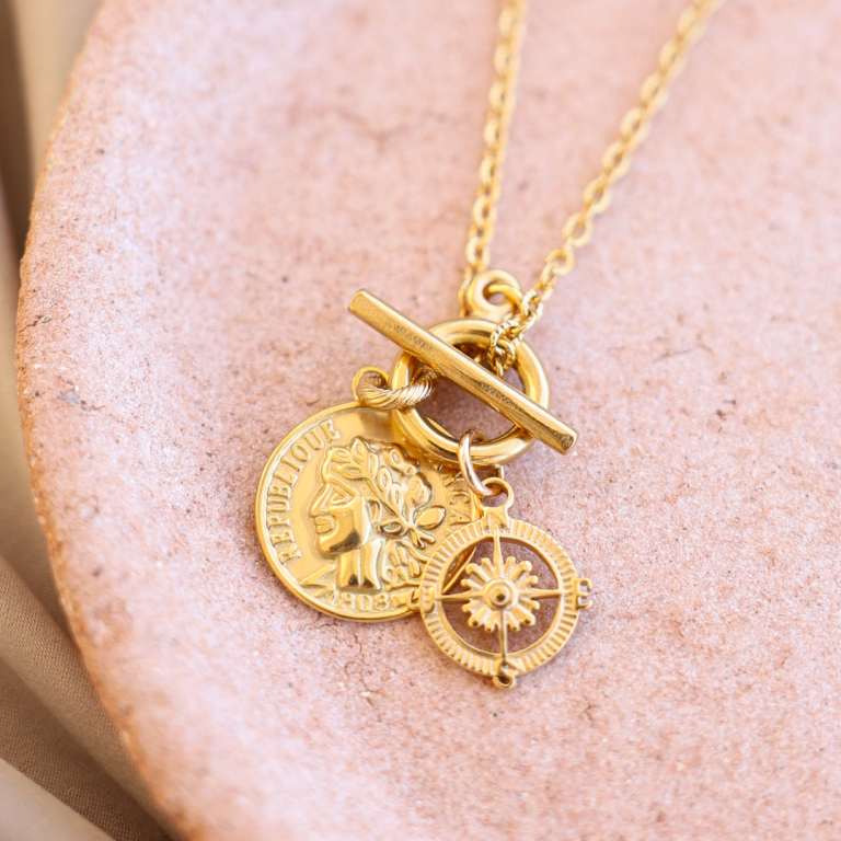Roestvrij stalen (RVS) Stainless steel bedels kompas Goud