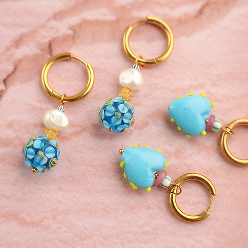 Wanneer je deze nieuwe glaskralen combineert met zoetwaterparels, glaskralen rocailles en millefiori kralen, maak je in korte tijd de mooiste kettingen en trendy telefoonkoorden. Gebruik de kralen ook voor het ontwerpen van bedels die je aan creolen hangt.