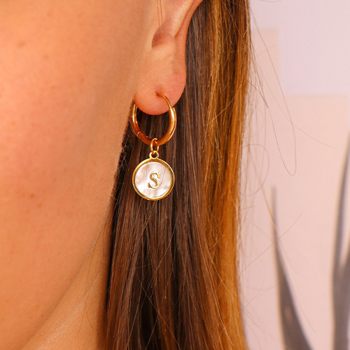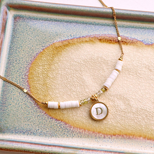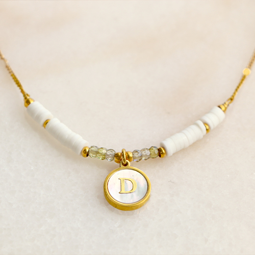 Roestvrij stalen (RVS) Stainless steel bedels 12mm shell initial D White (natuurlijke kleur)-gold