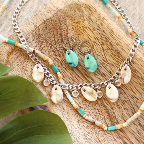 HomeInspiratieInspiratiesetsZomerse kettingen en oorbellen met resin Kauri schelpen