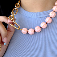 16 mm DQ® acryl kralen met strepen Pink-golden brown